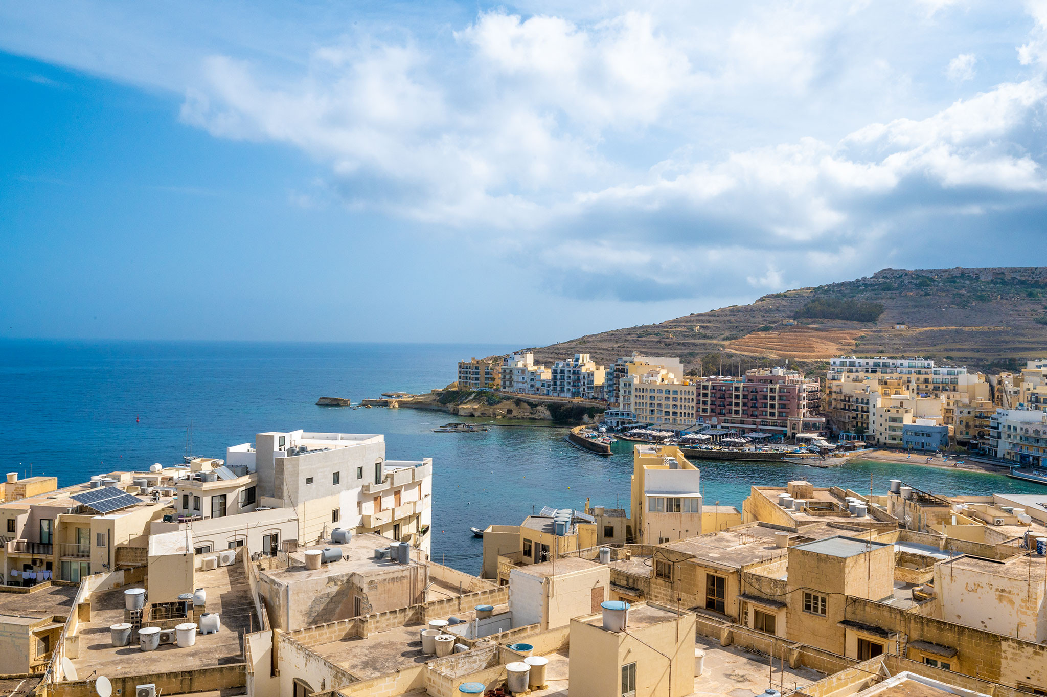 The Hillock residences apartments have been welcoming guests since 2012 and are set in a quite area of Marsalforn bay, just an 8 minutes’ stroll from the shore line, consisting of a good number of restaurants and pubs. The bay has a small sandy beach, together with a mix of rocky and pedestrian beaches ideal for cooling off and snorkelling the beautiful blue waters.