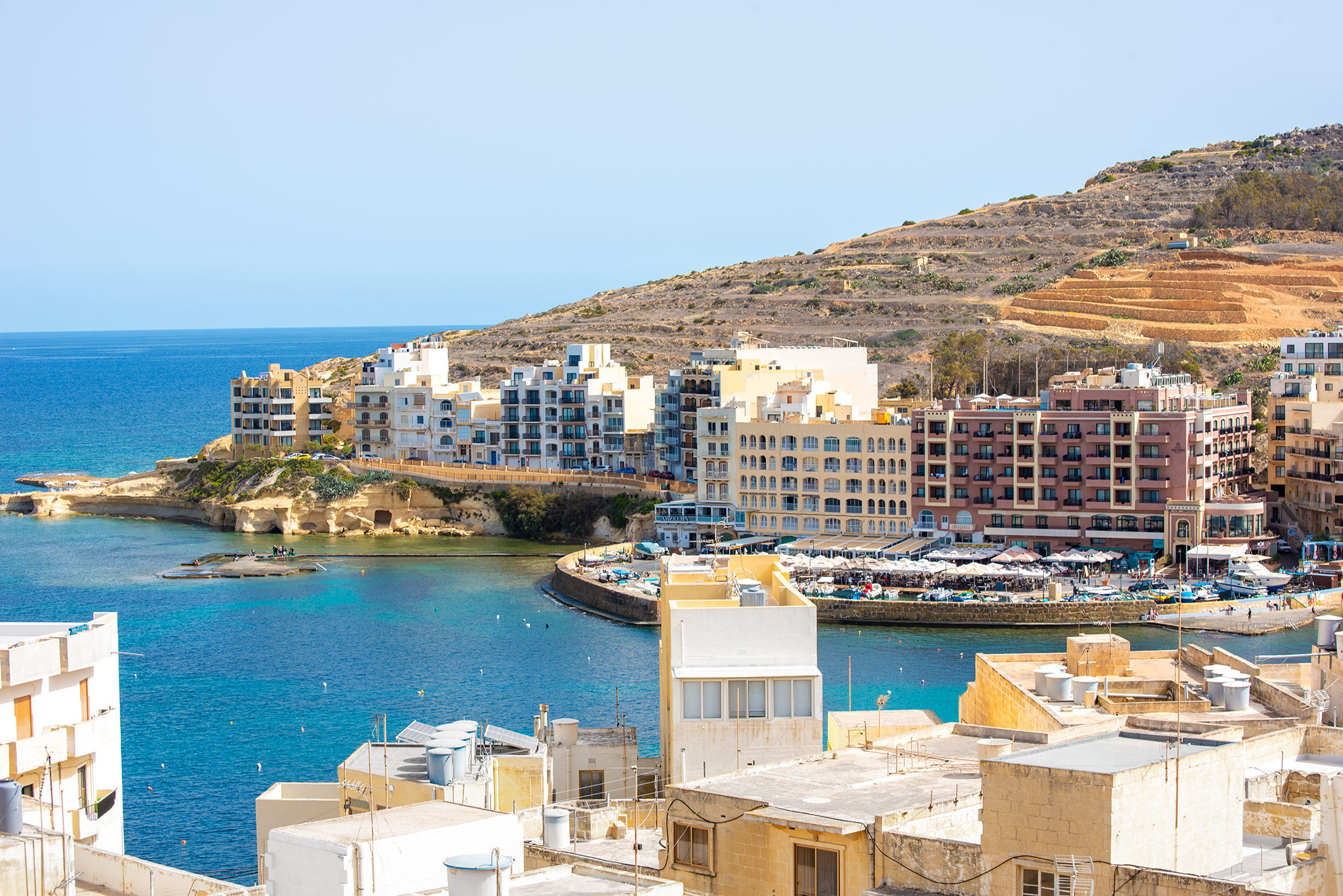 The Hillock residences apartments have been welcoming guests since 2012 and are set in a quite area of Marsalforn bay, just an 8 minutes’ stroll from the shore line, consisting of a good number of restaurants and pubs. The bay has a small sandy beach, together with a mix of rocky and pedestrian beaches ideal for cooling off and snorkelling the beautiful blue waters.