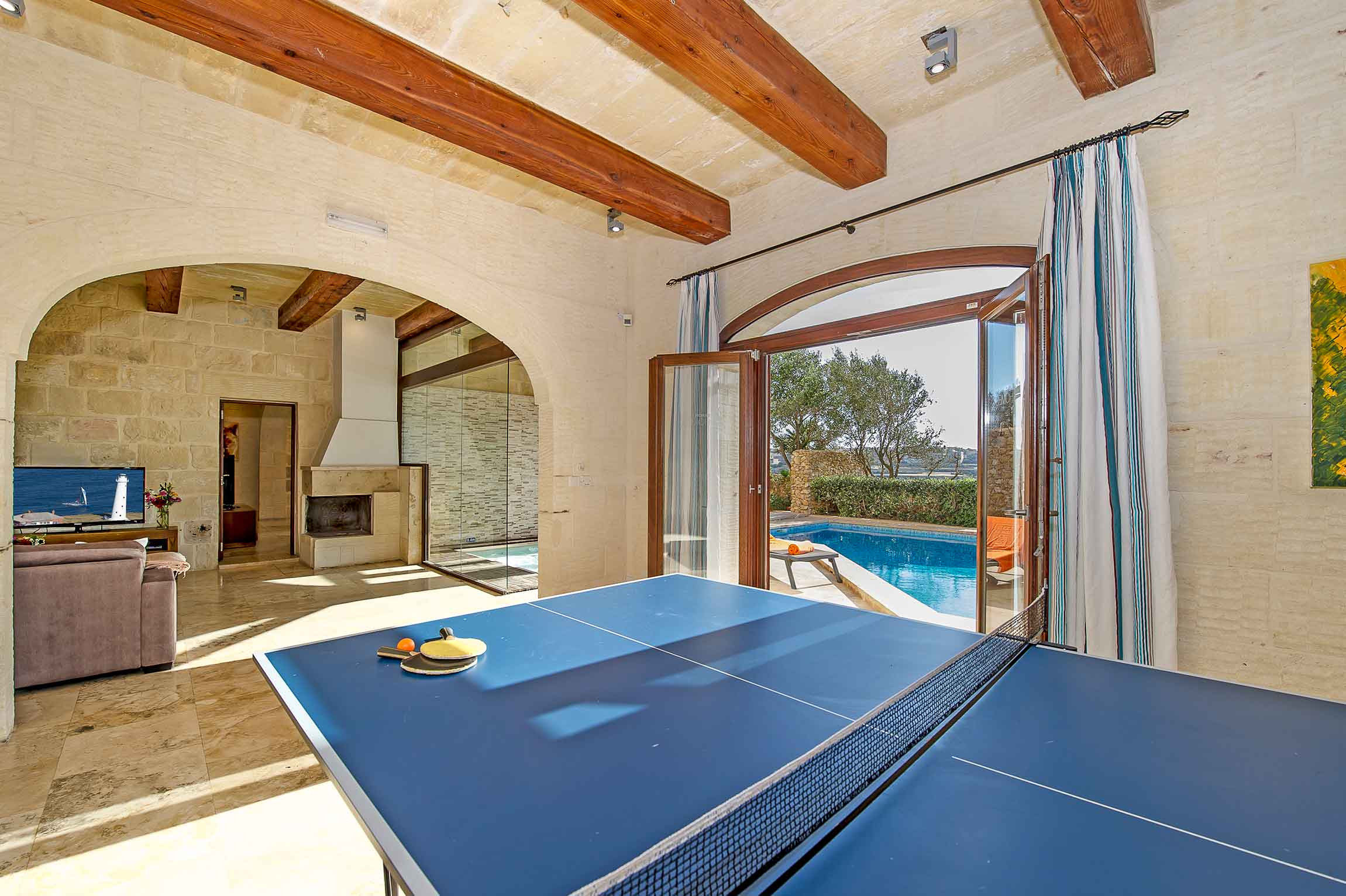 The villa boasts an incredible array of amenities, including 2 private 7.5 x 3.2 metre swimming pools with stunning views, a fully equipped kitchen with modern appliances like a dishwasher, coffee machine, and oven, and multiple entertainment options. Guests can enjoy 4 TVs with full list of channels, table tennis, and 2 cosy fireplace for cooler evenings.