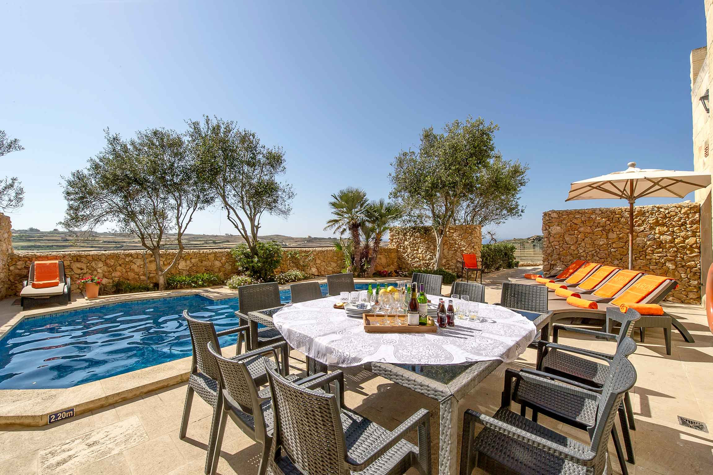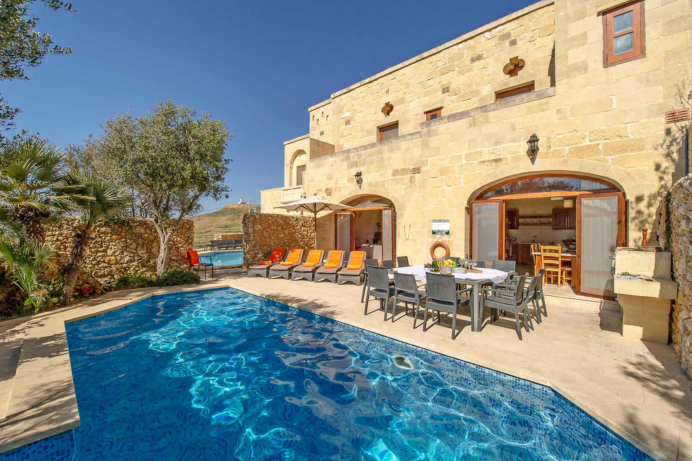 My group & I spent a fantastic week at this villa. Probably one of the only accommodations in Gozo with 7 bedrooms each with their own bathroom, which is great when you have 11 people. Definetly will book again.